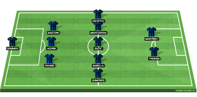Probable Lineup (3-5-2): Sommer; Pavard, Acerbi, Bastoni; Dumfries, Barella, Sucic, Mkhitaryan, Dimarco; Thuram, Martinez