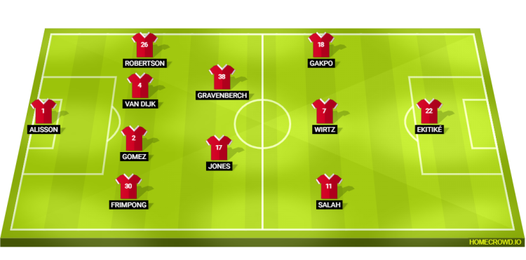 Predicted Liverpool XI: Alisson, Frimpong, Gomez, van Dijk, Robertson; Jones, Gravenberch; Salah, Wirtz, Gakpo; Ekitike