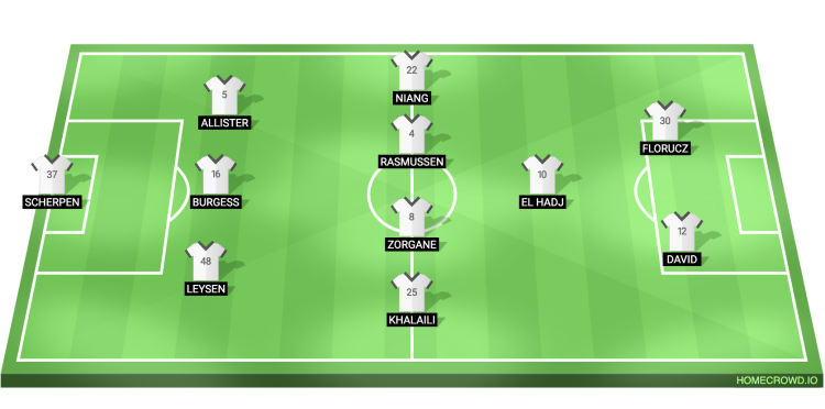 Probable Lineup (3-4-1-2): Scherpen; Leysen, Burgess, Mac Allister; Khalaili, Zorgane, Rasmussen, Niang; El Hadj; David, Florucz