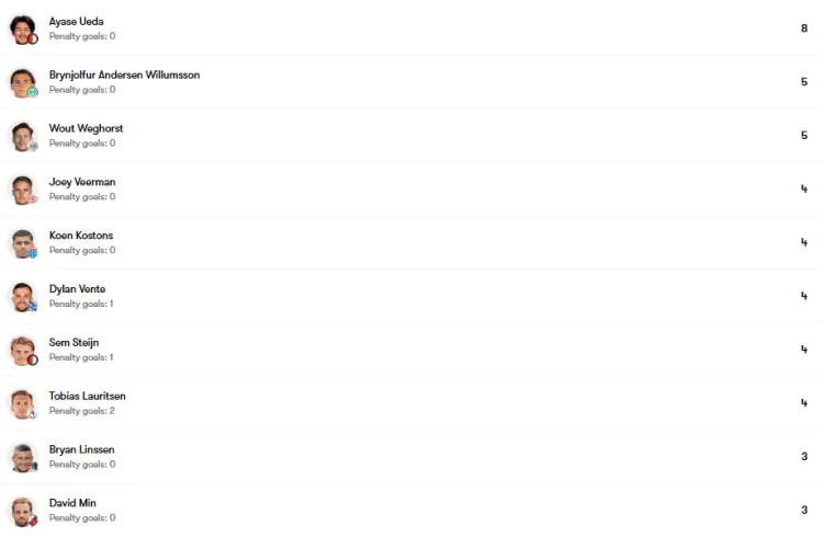 Feyenoord and Utrecht shared five goals as the league leaders continued their good start to the season. Ayase Ueda’s first half strike was cancelled out in the second half by Utrecht’s Gjivai Zechiel. Just three minutes later and Feyenoord were back in front through Sem Steijn, a lead they would hold on to until seven minutes remaining. Derry Murkin then looked to have stolen a point for Utrecht, only for the hosts to grab a late winner through that man Ueda again. The former Cercle Brugge striker now has eight goals in eight Eredivisie games.