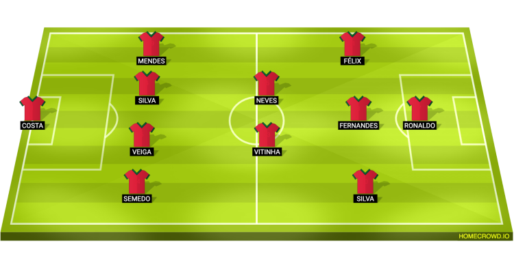 Probable Lineup (4-2-3-1): Costa; Semedo, Veiga, Dias, Mendes; Vitinha, Neves; Silva, Bruno Fernandes, Felix; Ronaldo