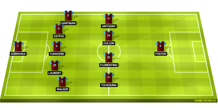 Probable Lineup (5-4-1): Dubravka; Walker, Laurent, Tuanzebe, Esteve, Hartman; Tchaouna, Florentino, Cullen, Anthony; Foster