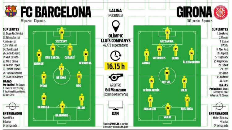 As for Girona, they are without suspended duo Alejandro Frances and Ivan Martin, which will mean a start in midfield for Jhon Solis. Bryan Gil and Joel Roca are also expected to return to the line-up, with Portu and Yaser Asprilla dropping to the bench.