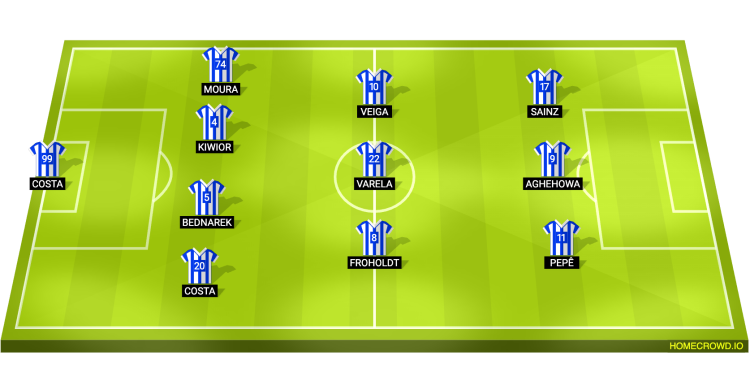Probable Lineup (4-3-3): Douglas Costa; Alberto Costa, Bednarek, Kiwior, Moura; Froholdt, Varela, Veiga; Pepe, Samu, Sainz