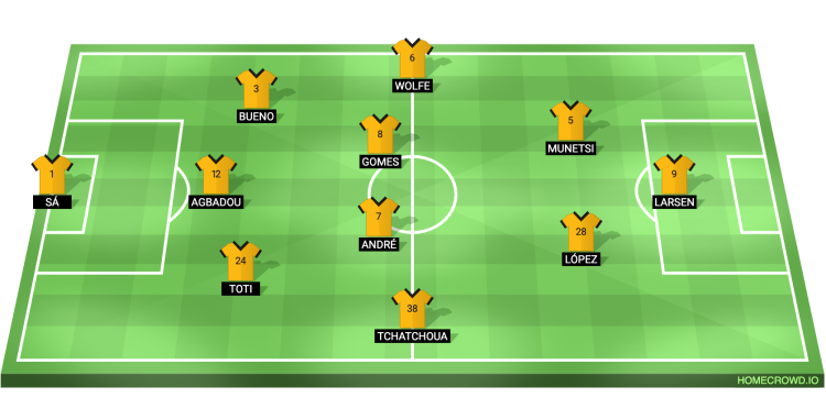 Probable Lineup (3-4-2-1): Sa; Gomes, Agbadou, Bueno; Tchatchoua, André, João Gomes, Wolfe; Lopez, Munetsi; Strand Larsen