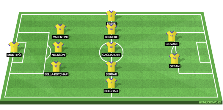 Lorenzo Montipo will start in goal, protected by a back three of Armel Bella-Kotchap, Victor Nelsson, and Nicolas Valentini, who will be tasked with containing Inter’s mobile forwards. The midfield should consist of Rafik Belghali and Martin Frese operating as wing-backs, providing width and tracking back to support the defence.