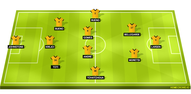Probable Lineup (3-4-2-1): Johnstone; Toti Gomes, Krejci, Santiago Bueno; Tchatchoua, Andre, Joao Gomes, Hugo Bueno; Munetsi, Bellegarde; Strand Larsen