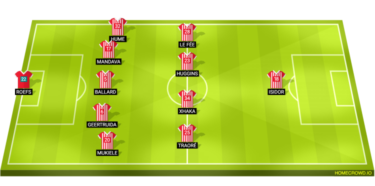 Probable Lineup (5-4-1): Roefs; Mukiele, Geertruida, Ballard, Mandava, Hume; Traore, Xhaka, Huggins, Le fee; Isidor
