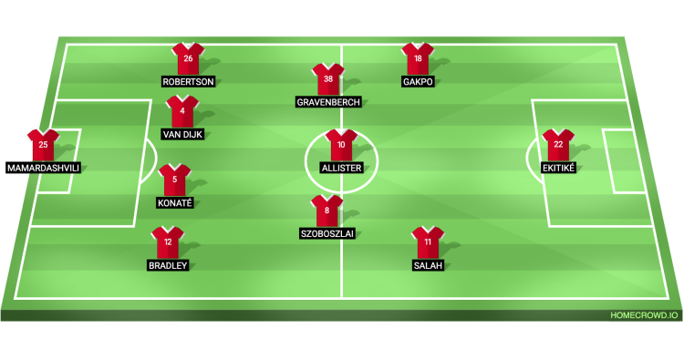 Probable Lineup (4-3-3): Mamardashvilli, Bradley, Konate, van Dijk, Robertson; Szoboszlai, Gravenberch, Mac Allister; Salah, Gakpo; Ekitike