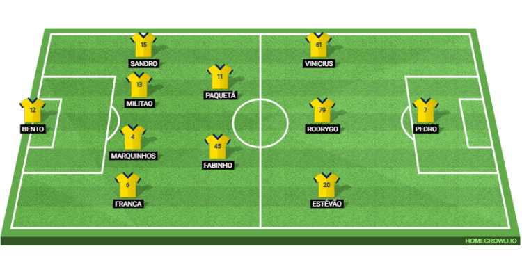 Probable Lineup (4-2-3-1): Bento; Franca, Marquinhos, Militao, Sandro; Fabinho, Paqueta; Estevao, Rodrygo; Vinicius, Pedro