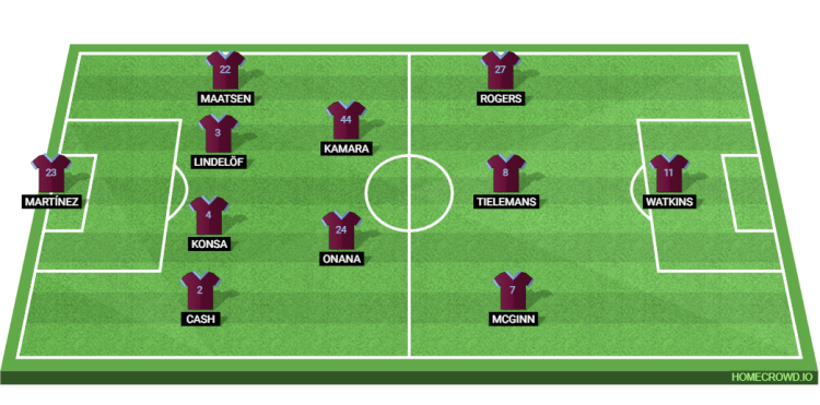 Probable Lineup (4-2-3-1): Martinez; Cash, Konsa, Lindelof, Maatsen; Kamara, Onana; McGinn, Tielemans, Rogers; Watkins