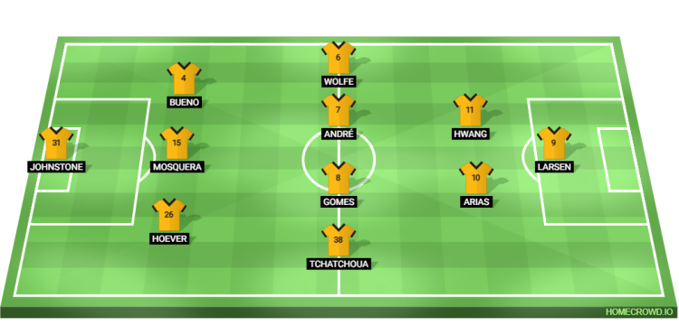 Probable Lineup (3-4-2-1): Johnstone; Hoever, Mosquera, Bueno; Tchatchoua, Joao Gomes, Andre, Wolfe; Arias, Hwang; Strand Larsen