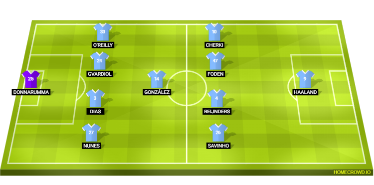 Probable Lineup (4-1-4-1): Donnarumma; Nunes, Dias, Gvardiol, O’Reilly; Nico Gonzalez; Savinho, Reijnders, Foden, Cherki; Haaland