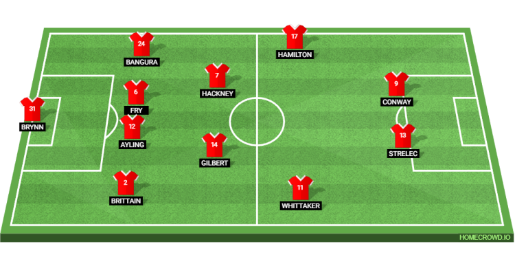 Probable Lineup (4-2-2-2): Brynn; Brittain, Ayling, Fry, Bangura; Gilbert, Hackney; Whittaker, Hamilton; Conway, Strelec