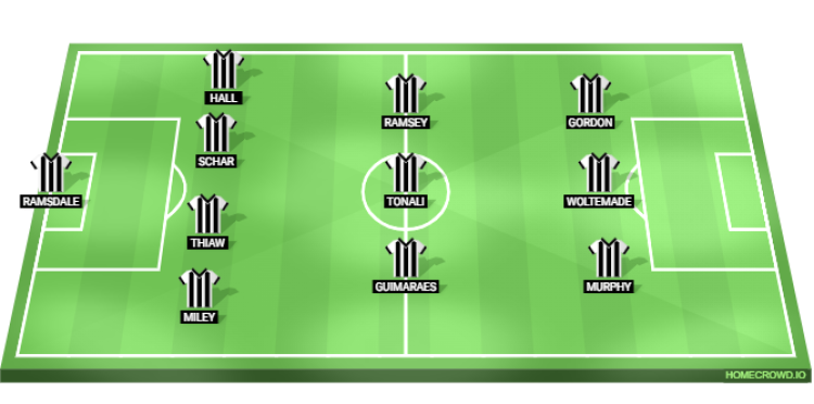 Probable Lineup (4-3-3): Ramsdale; Miley, Thiaw, Schar, Hall; Guimaraes, Tonali, Ramsey; Murphy, Woltemade, Gordon