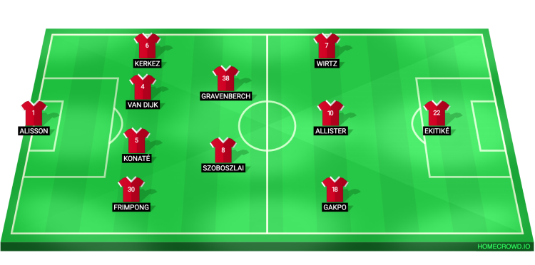 Probable Lineup (4-2-3-1): Alisson; Frimpong, Konate, van Dijk, Kerkez; Szoboszlai, Gravenberch; Gakpo, Mac Allister, Wirtz; Ekitike