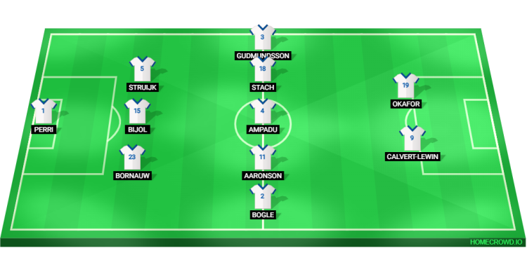 Probable Lineup (3-5-2): Perri; Bornauw, Bijol, Struijk; Bogle, Aaronson, Ampadu, Stach, Gudmundsson; Calvert-Lewin, Okafor
