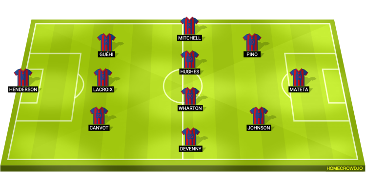 Probable Lineup (3-4-2-1): Henderson; Canvot, Lacroix, Guehi; Devenny, Wharton, Hughes, Mitchell; Johnson, Yeremy; Mateta