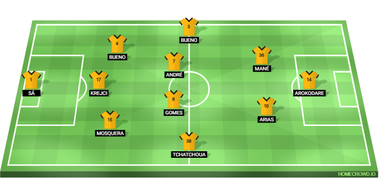 Probable Lineup (3-4-2-1): Sa; Mosquera, Krejci, Santiago Bueno; Tchatchoua, Joao Gomes, Andre, Hugo Bueno; Arias, Hwang; Strand Larsen