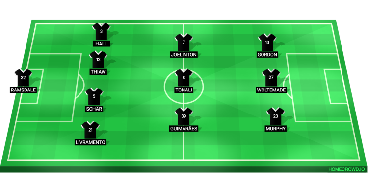 Probable Lineup (4-3-3): Ramsdale; Livramento, Schar, Thiaw, Hall; Bruno Guimaraes, Tonali, Joelinton; Murphy, Woltemade, Gordon
