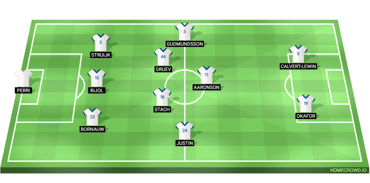 Probable Lineup (3-5-2): Perri; Bornauw, Bijol, Struijk; Justin, Stach, Aaronson, Gruev, Gudmundsson; Calvert-Lewin, Okafor