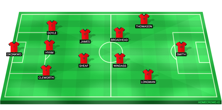Probable Lineup (3-2-4-1): Okonkwo; Cleworth, Hyam, Doyle; Sheaf, James; Longman, Windass, Broadhead, Thomason; Smith