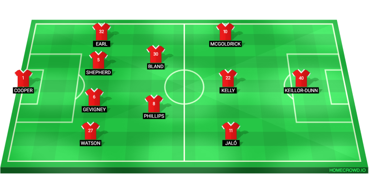 Probable Lineup (4-2-3-1): Cooper; Watson, Gevigney, Shepherd, Earl; Phillips, Bland; Jalo, Kelly, McGoldrick; Keillor-Dunn