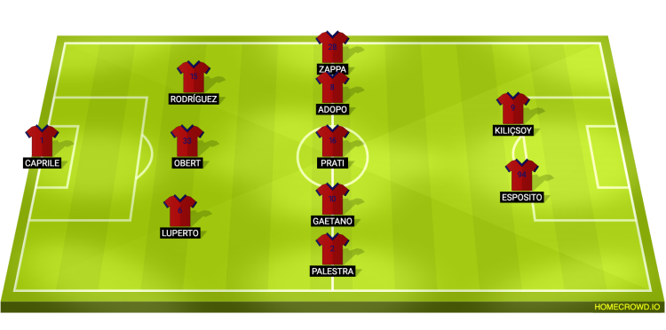 Probable Lineup (3-5-2): Caprile; Luperto, Obert, Rodriguez; Palestra, Gastano, Prati, Adopo, Zappa; Esposito, Kilicsoy