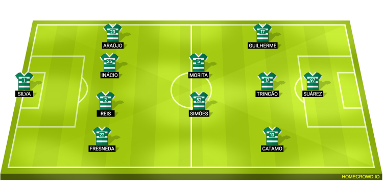 Probable Lineup (4-2-3-1): Silva; Fresneda, reis, Inacio, Araujo; Simoes, Morita; Catamo, Trincao, Guilherme; Suarez