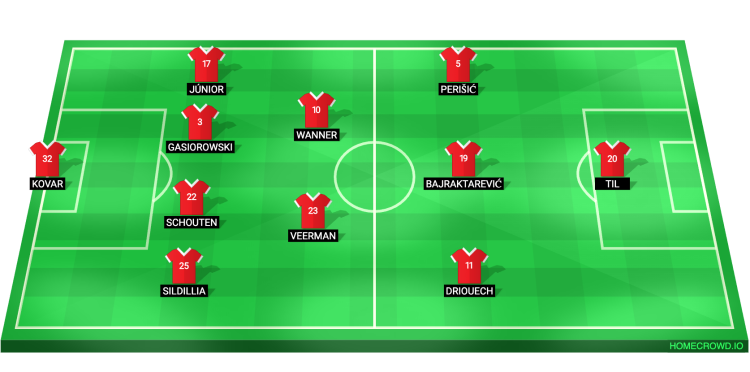 Probable Lineup (4-2-3-1): Kovar; Sildillia, Schouten, Gasiorowski, Junior; Veerman, Wanner; Driouech, Bajraktarevic, Perisic; Til