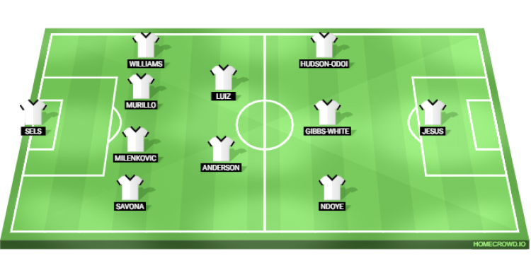 Probable Lineup (4-2-3-1): Sels; Savona, Milenkovic, Murillo, Williams; Anderson, Luiz; Ndoye, Gibbs-White, Hudson-Odoi; Jesus