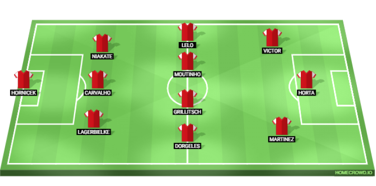 Probable Lineup (3-4-3): Hornicek; Lagerbielke, Carvalho, Niakate; Dorgeles, Grillitsch, Moutinho, Lelo; Martinez, Victor, Horta