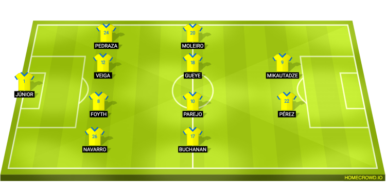 Probable Lineup (4-4-2): Junior; Navarro, Veiga, Foyth, Pedraza; Buchanan, Parejo, Gueye, Moleiro; Perez, Mikautadze