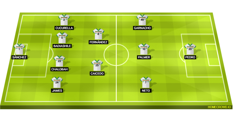 Probable Lineup (4-2-3-1): Sanchez; James, Chalobah, Badiashile, Cucurella; Caicedo, Fernandez; Neto, Palmer, Garnacho; Pedro