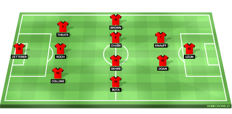 Probable Lineup (3-4-2-1): Zetterer; Collins, Koch, Theate; Buta, Skhiri, Chaibi, Brown; Doan, Knauff; Uzun