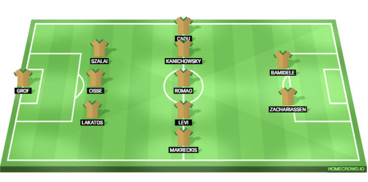 Probable Lineup (3-5-2): Grof; Lakatos, Cisse, Szalai; Makreckis, Levi, Romao, Kanichowsky, Cadu; Zachariassen, Bamidele