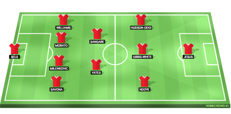 Probable Lineup (4-2-3-1): Sels; Savona, Milenkovic, Morato, Williams; Yates, Sangare; Ndoye, Gibbs-White, Hudson-Odoi; Jesus