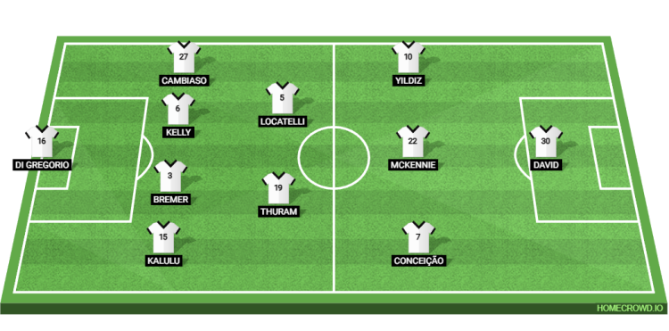 Probable Lineup (4-2-3-1): Di Gregorio; Kalulu, Bremer, Kelly, Cambiaso; Locatelli, Thuram; Conceicao, McKennie, Yildiz; David