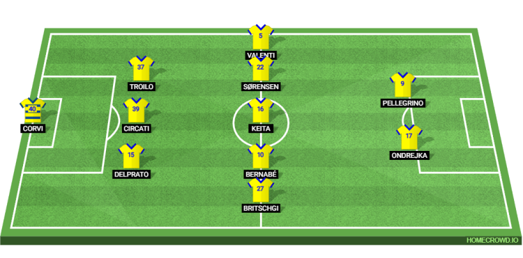 Probable Lineup (3-5-2): Corvi; Delprato, Circati, Troilo; Britschgi, Bernabe, Keita, Sorensen, Valenti; Ondrejka, Pellegrino