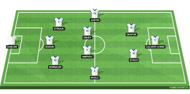 Probable Lineup (3-4-2-1): Darlow; Bornauw, Rodon, Struijk; Bogle, Ampadu, Gruev, Justin; Stach, Okafor; Calvert-Lewin