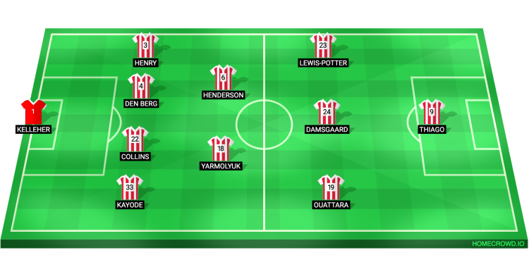 Probable Lineup (4-2-3-1): Kelleher; Kayode, Collins, van den Berg, Henry; Yarmolyuk, Henderson; Ouattara, Damsgaard, Lewis-Potter; Thiago