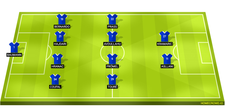Probable Lineup (4-4-2): Baumann; Coufal, Hranac, Hajdari, Bernardo; Toure, Promel, Avdullahu, Prass; Asllani, Kramaric