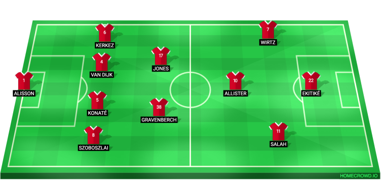 Probable Lineup (4-2-3-1): Alisson; Szoboszlai, Konate, van Dijk, Kerkez; Jones, Gravenberch; Salah, Mac Allister, Wirtz; Ekitike