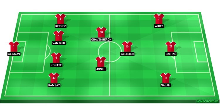 Predicted Liverpool XI: Alisson; Ramsay, Konate, van Dijk, Kerkez; Gravenberch, Jones; Salah, Mac Allister, Wirtz; Ekitike