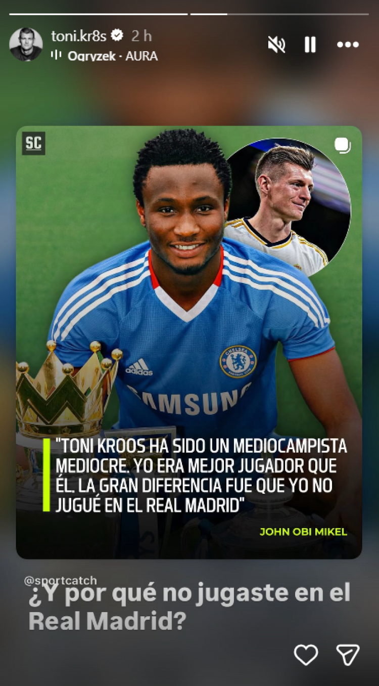 Upon seeing these comments online, Kroos reposted them on his Instagram story with the caption ‘And why didn’t you play for Real Madrid?’ The former Germany international clearly was not impressed with Mikel’s statements.