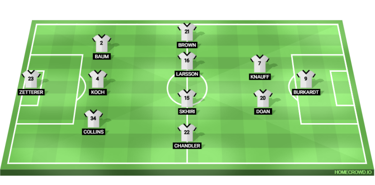 Probable Lineup (3-4-2-1): Zetterer; Collins, Koch, Baum; Chandler, Skhiri, Larsson, Brown; Doan, Knauff; Burkardt