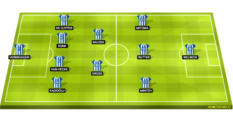 Probable Lineup (4-2-3-1): Verbruggen; Kadioglu, van Hecke, Dunk, De Cuyper; Gross, Baleba; Minteh, Rutter, Mitoma; Welbeck