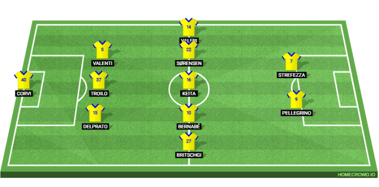 Probable Lineup (3-5-2): Corvi; Del Prato, Troilo, Valenti; Britschgi, Bernabe, Keita, Sorensen, Valeri; Strefezza, Pellegrino