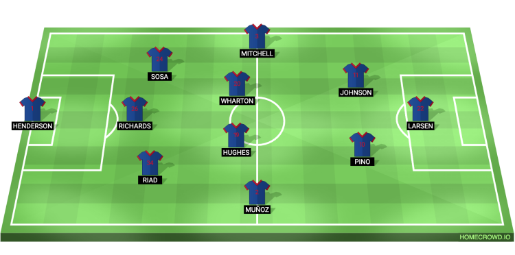 Probable Lineup (3-4-2-1): Henderson; Riad, Richards, Sosa; Munoz, Hughes, Wharton, Mitchell; Johnson, Pino; Strand Larsen