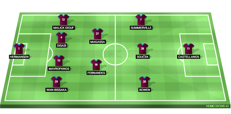 Probable Lineup (4-2-3-1): Hermansen; Wan-Bissaka, Mavropanos, Disasi, Diouf; Fernandes, Magassa; Bowen, Soucek, Summerville; Castellanos